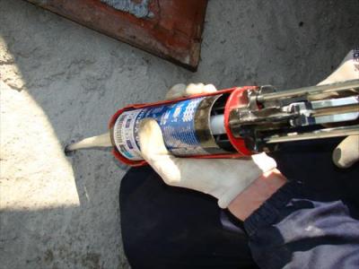 2) Blasen Sie die Bohrloch mit einer entsprechenden Pumpe (oder Druckluft) durch, nehmen Sie eine Reinigung der seitlichen Oberflächen der Bohrloch mit einer Bürste von Metall vor, blasen Sie die Bohrloch erneut durch, bis kein Pulver und / oder andere Materialrückstände mehr austreten. Inbesondere, wenn Wasser vorhanden ist, ist die Benutzung der Metallbürste für die Reinigung der seitlichen Oberfläche der Bohrloch notwendig.